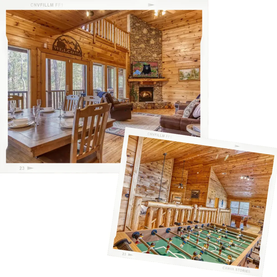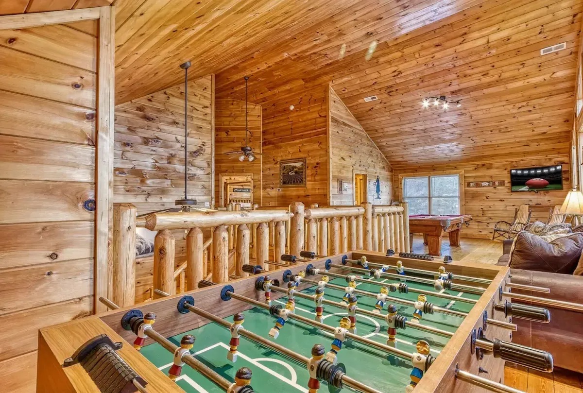 Escape to our stunning cabin in Sevierville, where modern comforts meet the tranquility of nature. Located just minutes from The Island, Pigeon Forge, and the entrance to Gatlinburg National Park, you’ll find the perfect balance of relaxation and adventure right at your doorstep. Whether you’re roasting marshmallows by the fire pit, unwinding in the hot tub, or competing in a game of foosball, this spacious cabin offers everything you need for an unforgettable stay.